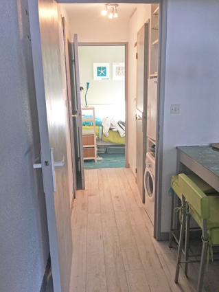 Un couloir desservant la chambre, la salle de bain et la pièce principale.